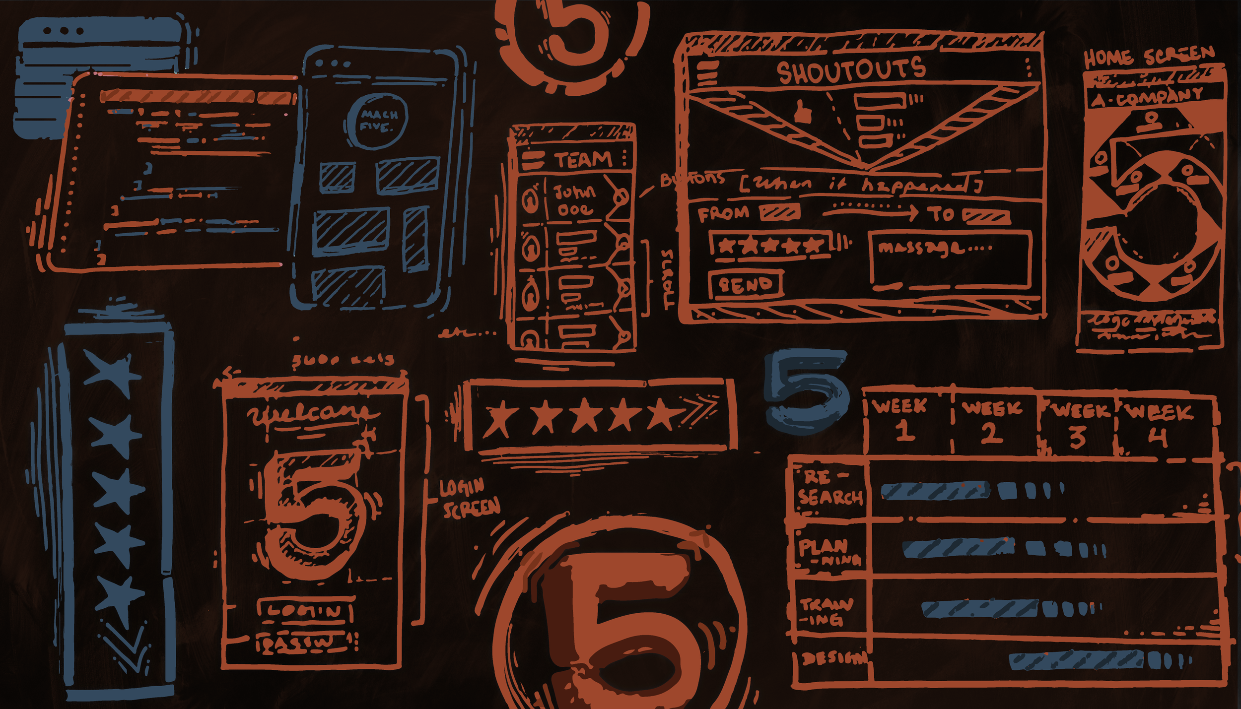 The following icons were illustrated and designed to represent each service that Mach Five Tech has to offer companies. The sticky-note style mirrors the blueprint background from the website’s hero. Mach Five Tech aims for a personable and recognizable design to symbolize “starting from scratch.”
