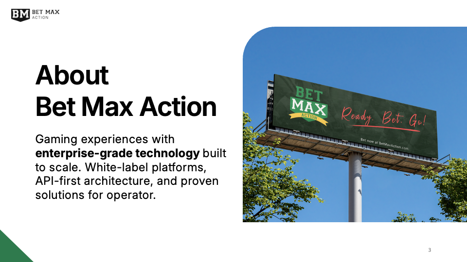 Bet Max Action is a free-to-play sports betting platform across multiple verticals with gaming technology, loyalty systems, and gamification solutions designed for enterprise scale. BMA is a white label solution, designed to offer a cost-effective, ready-made product with built-in branding. That’s where I come in.
